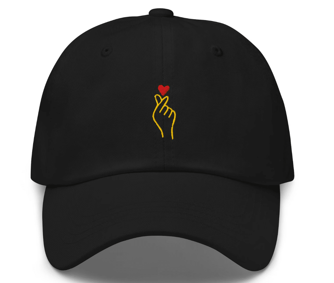 21. Finger Heart Korean Love Sign Embroidered Baseball Caps | $14